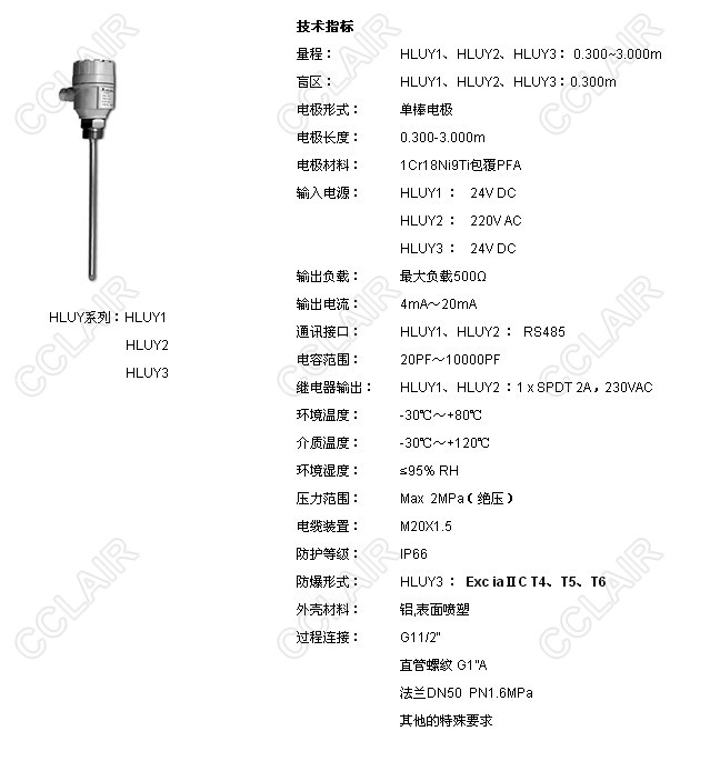 HLUY1,HLUY2,HLUY3,HLUY射頻導(dǎo)納物位計