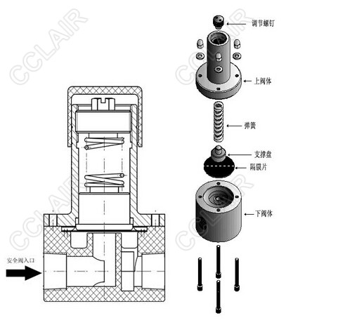 •彈簧膜片式結構,壓力可調(調壓范圍見參數(shù)表)