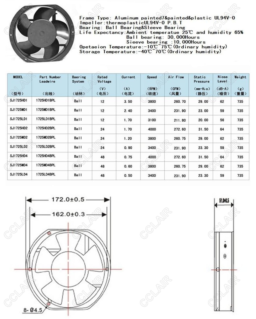 SJ1725HD1,SJ1725MD1,SJ1725LD1,SJ1725HD2,SJ1725MD2,SJ1725LD2,SJ1725,SANJI DC軸流風(fēng)機(jī)