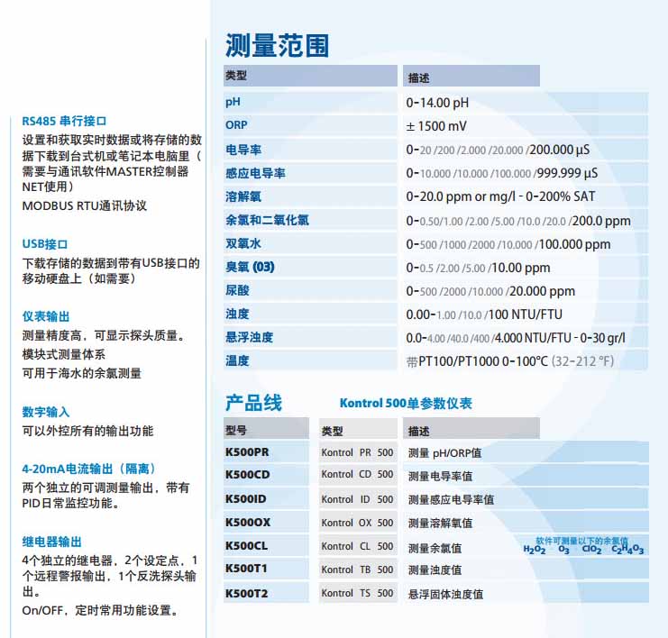 K500PR,K500CD,K500ID,K500OX,K500CL,K500T1,K500T2,SEKO單參數(shù)水質(zhì)監(jiān)控儀