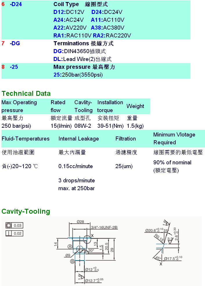 V3274-T03-21,V3274-T03-22,V3274-T03-23,V3274-T03-24,V3274-T03-20-S-N-D24-DG-25,HYDROMAX插入式電磁升降閥