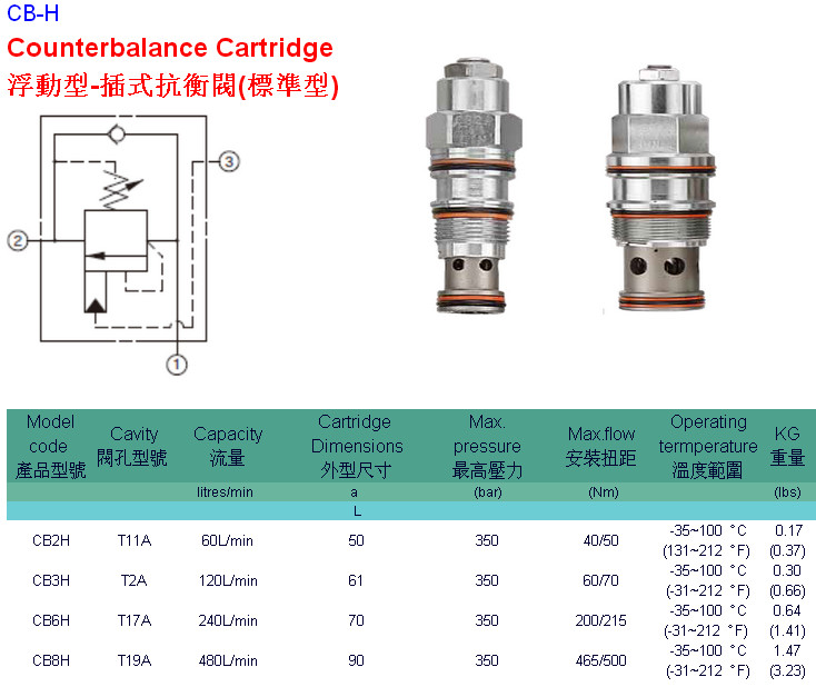 CB2H-T11A-LJN,CB3H-T2A-LKN,CB6H-T17A-LCN,CB8H-T18A-LDN,CB2H-T11A-LKN,HYDROMAX插式抗衡閥 |