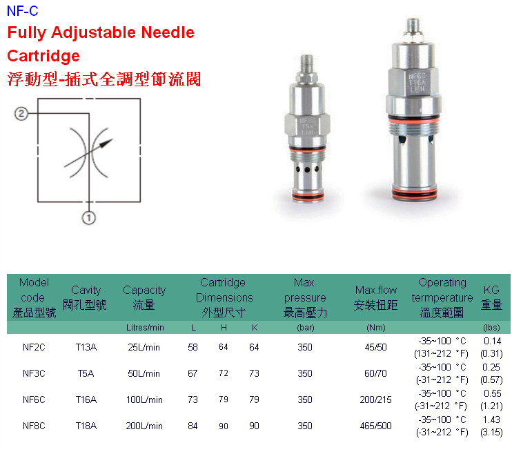NF2C-T13A-LCN,NF3C-T5A-LAN,NF6C-T16A-LEN,NF8C-T18A-LGN,HYDROMAX插式全調(diào)型節(jié)流閥 |
