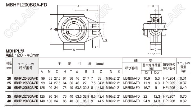 MBHPL204BGA-FD,MBHPL205BGA-FD,MBHPL206BGA-FD,MBHPL207BGA-FD,MBHPL200BGA-FD,軸承 |