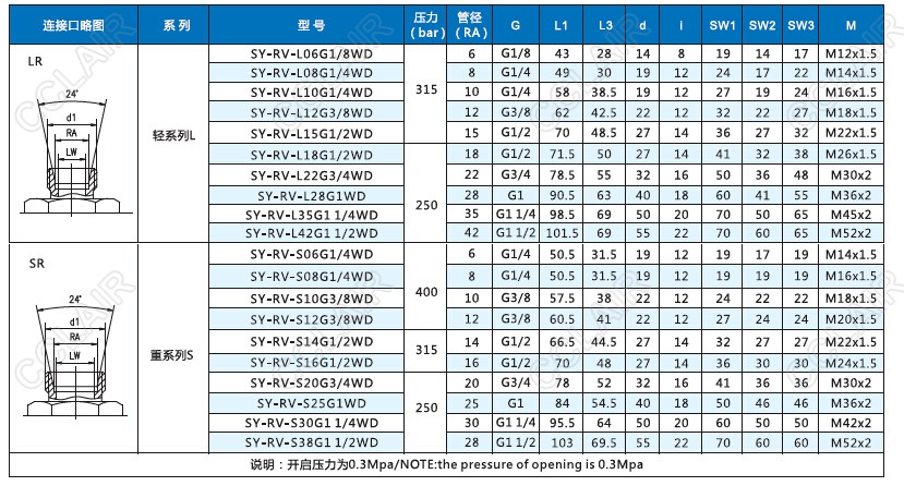 SY-RV-L06G1/8WD,SY-RV-L08G1/4WD,SY-RV-L10G1/4WD,SY-RV-L12G3/8WD,SY-RV-L15G1/2WD,SY-RV-L18G1/2WD,SY-RV-L22G3/4WD,SY-RV-L28G1WD,SY-RV-L35G1 1/4WD,SY-RV-L42G1 1/2WD,SY-RV-S06G1/4WD,SY-RV-S08G1/4WD,SY-RV-S10G3/8WD,SY-RV-S12G3/8WD,SY-RV-S14G1/2WD,SY-RV-S16G1/2WD,SY-RV-S20G3/4WD,SY-RV-S25G1WD,SY-RV-S30G1 1/4WD,SY-RV-S38G1 1/2WD,SY-RV,