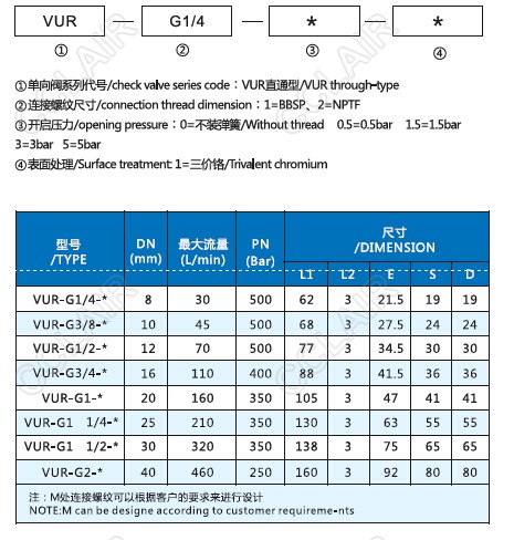 VUR-G1/2-0,VUR-G1/2-0.5,VUR-G1/2-1.5,VUR-G1/2-3,VUR-G1/2-5,