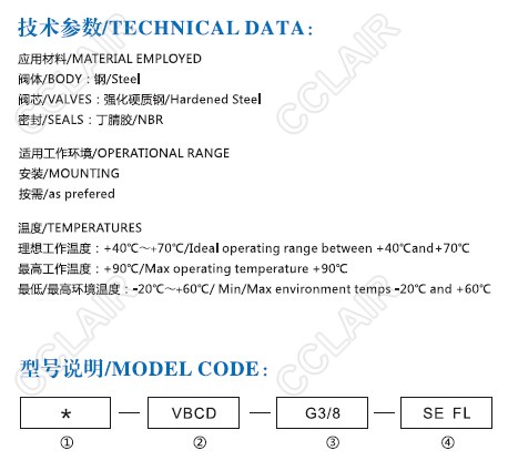 VBCD-G3/8-SEFL,VBCD-G1/2-SEFL,VBCD-G3/8-SE-FL,VBCD-G1/2-SE-FL,VBCD-SE-FL,單向平衡閥 |