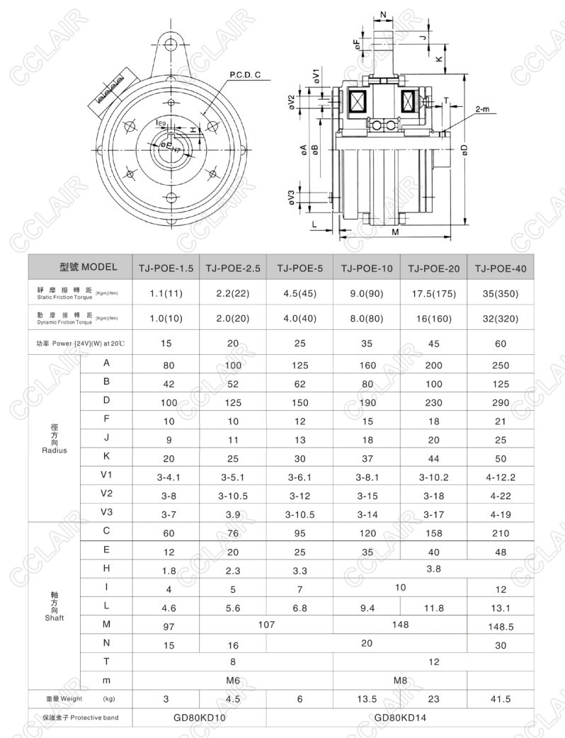TJ-POE-0.6,TJ-POE-1.5,TJ-POE-2.5,TJ-POE-5,TJ-POE-10,TJ-POE,套筒式電磁離合、剎車器組