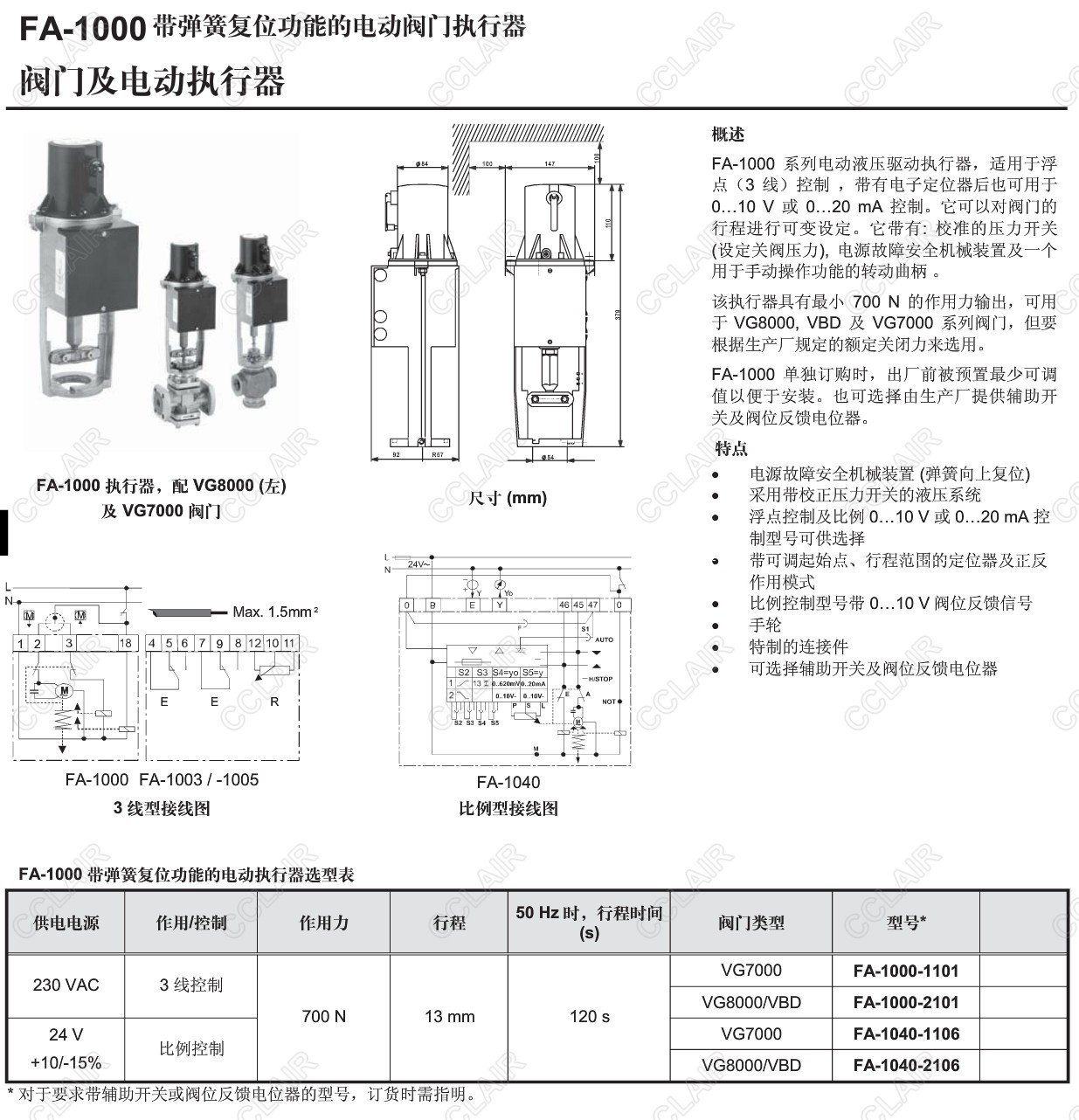 FA-1000-1101,FA-1000-2101,FA-1040-1106,FA-1040-2106,FA-1000,帶彈簧復(fù)位功能的電動(dòng)閥門執(zhí)行器