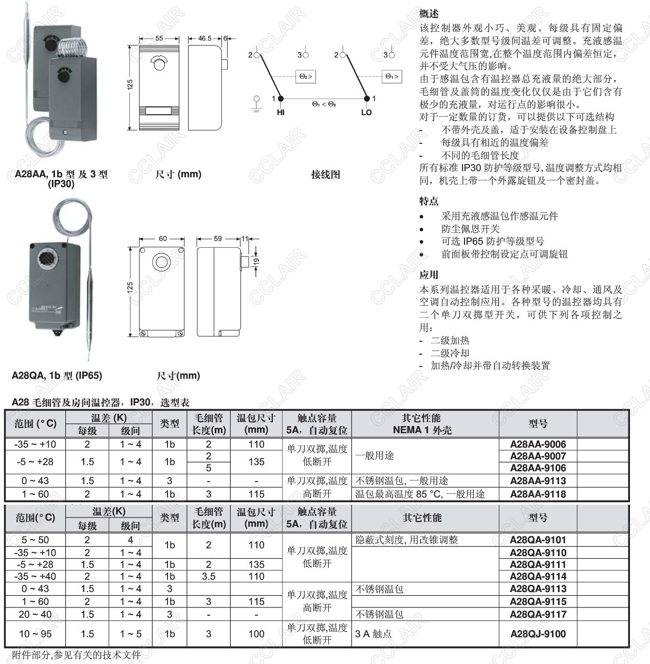 A28AA-9006,A28AA-9007,A28AA-9106,A28AA-9113,A28AA-9118,A28,IP30兩級(jí)細(xì)管及房間溫控器
