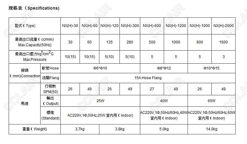 NX系列計量泵主要性能: