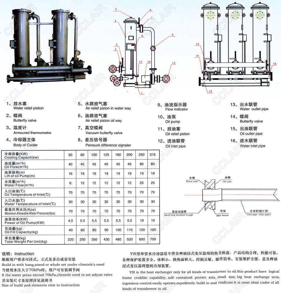 YSI-50,YSI-80,YSI-100,YSI-125,YSI-160,YSI-200,YSI-250,YSI-315,YSI,油水冷卻器 |