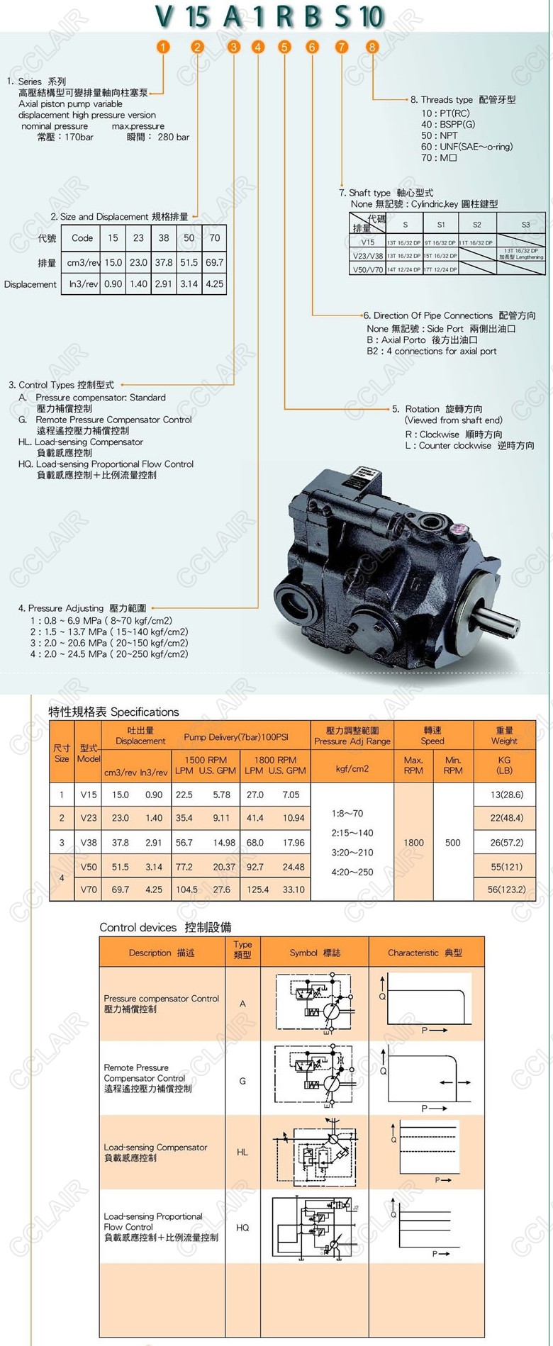 V15A1R,V15A1L,V15HQ2R,V15HQ2L,V38G3L,V70HQ4R,V70HQ4L,V38A4R,變量柱塞泵