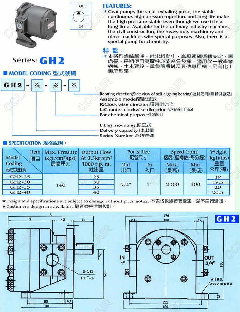 GH2-25-L-L,GH2-30-L-R,GH2-35-L-L,GH2-40-L-R,GH2,化工泵YEESEN