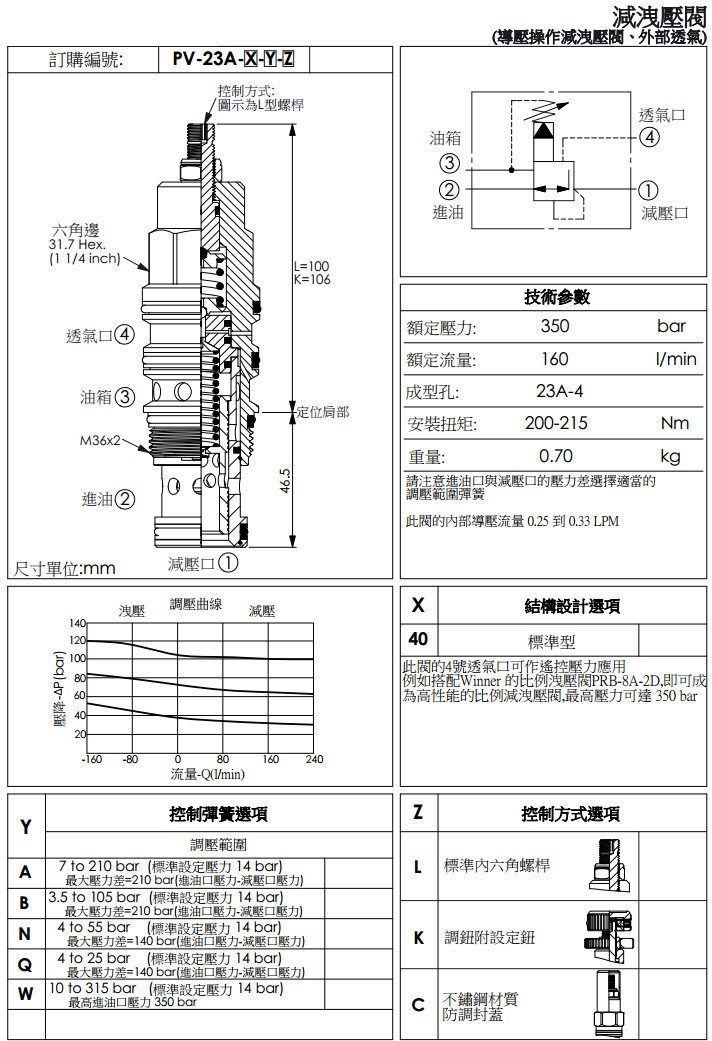 PV-23A-40-A-L,PV-23A-40-B-L,PV-23A-40-D-L,PV-23A-40-E-L,PV-23A-40-W-L,winner減泄壓閥
