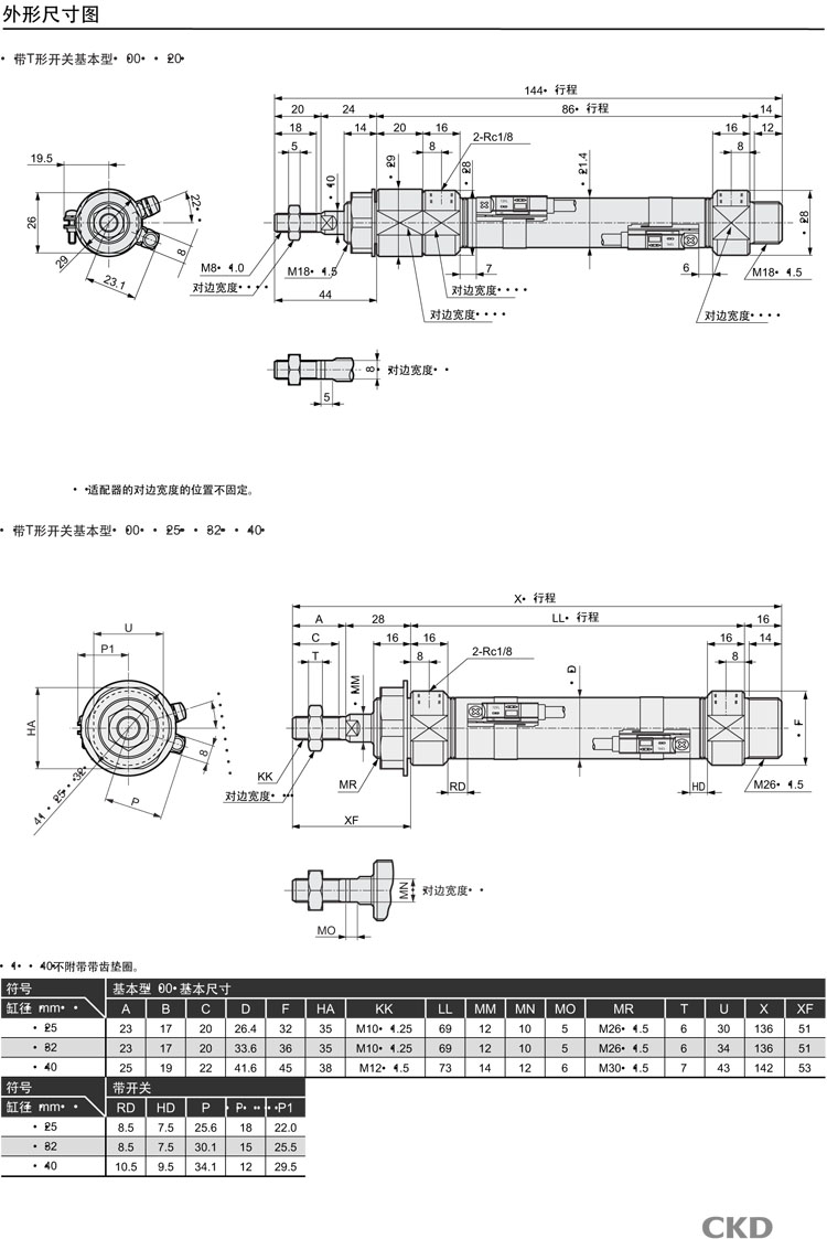 CMK2-G3-00-20-25,CMK2-G3-00-20-50,CMK2-G3-00-20-75,CMK2-G3-00-20-100,CMK2-G3-00-20-150,CKD緊固型氣缸