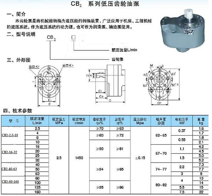 CB2-2.5,CB2-4,CB2-6,CB2-10,CB2-16,CB2-20,CB2-25,CB2-32,CB2-40,CB2-50,CB2-63,CB2-80,CB2-100,CB2-125,CB2-160齒輪泵