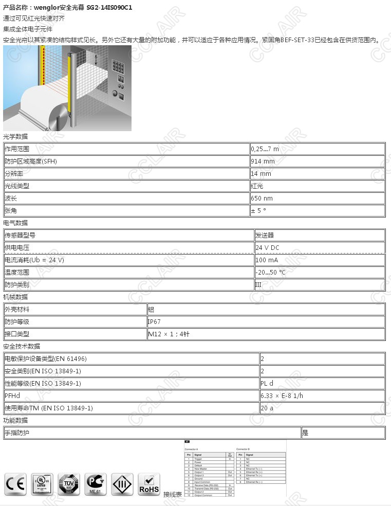 SG2-14IS090C1,wenglor安全光幕