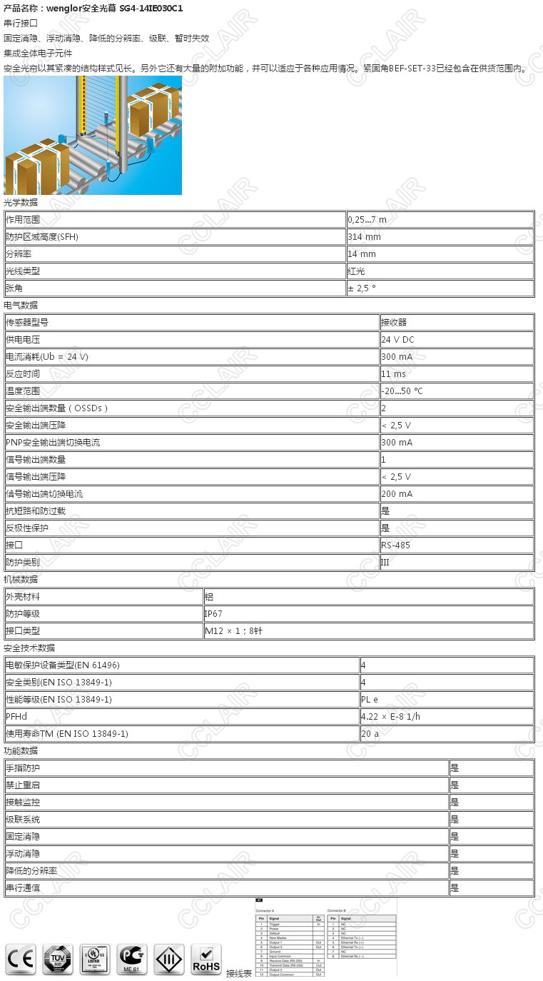 SG4-14IE030C1,wenglor安全光幕