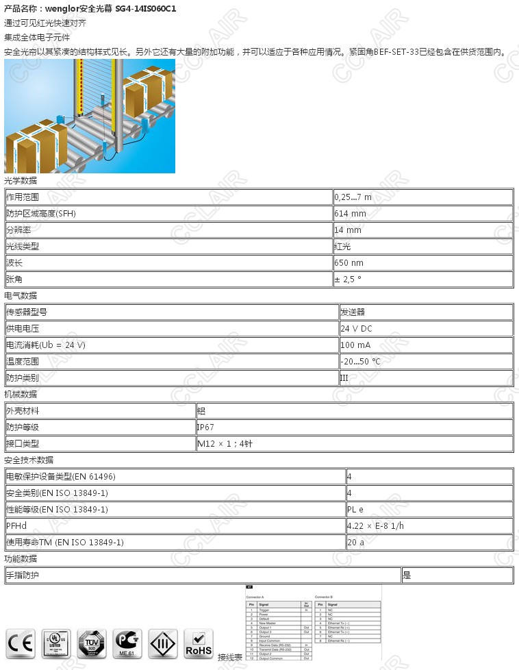 SG4-14IS060C1,wenglor安全光幕