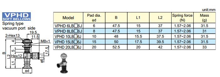 VPHD6LBN6J,VPHD8LBN6J,VPHD10LBN6J,VPHD15LBN6J,VPHD20LBN6J,VPHD6LBS6J,VPHD8LBS6J,PISCO真空吸盤
