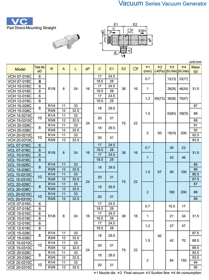 VCH07-016C,VCH10-016C,VCH12-016C,VCL07-016C,VCL15-038C,VCE07-018C,VCE20-0310C,PISCO真空發(fā)生器 |