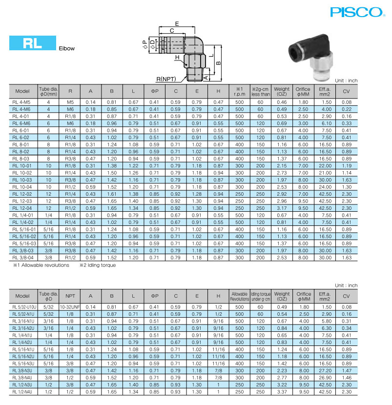 RL4-M5,RL6-M6,RL8-01,RL10-01,RL12-02,RL1/4-01,RL5/16-01,RL3/8-03,PISCO旋轉(zhuǎn)型接頭