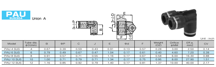 PAU4SUS,PAU6SUS,PAU8SUS,PAU10SUS,PAU12SUS,PISCO快速接頭