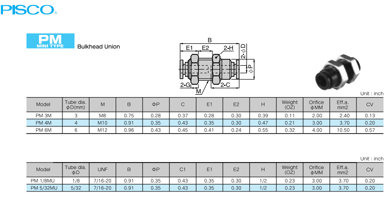 PM3M,PM4M,PM6M,PM1/8MU,PM5/32MU,PISCO快速接頭
