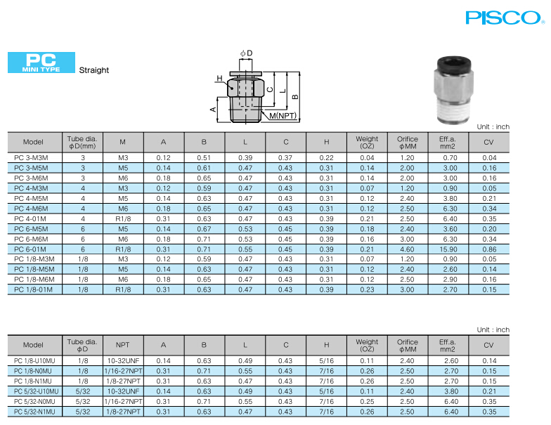 PC3-M3M,PC4-M3M,PC6-M5M,PC1/8-M3M,PC1/8-U10MU,PC5/32-U10MU,PC5/32-N1MU