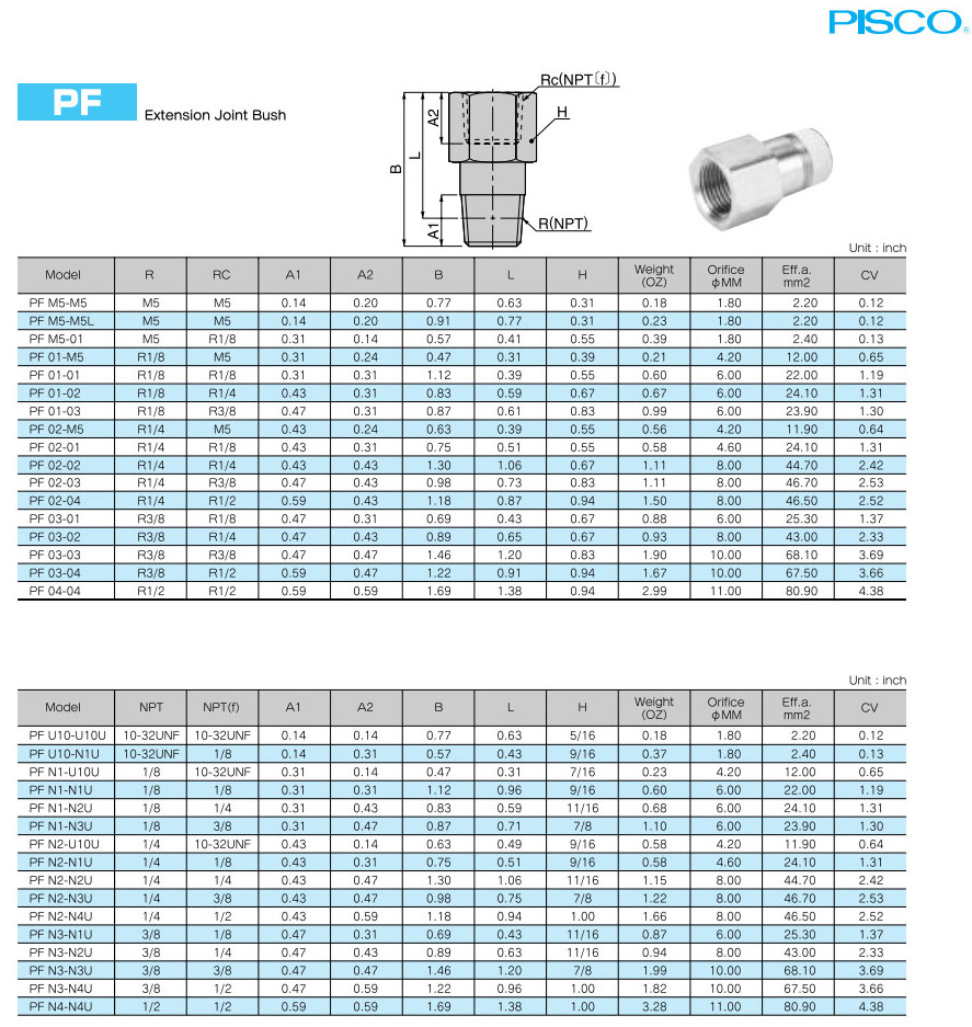 PFM5-M5,PF01-M5,PF02-01,PF03-04,PF04-04,PFU10-U10U,PFN1-U10U,PFN2-U10U,PFN3-N4U,PFN4-N4U,PISCO快速接頭 |