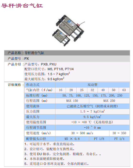 PXB-16*50,PXB-20*50,PXB-25*50,PXB-32*50,PXB-40*50,PXB-50*50,PXB-63*50,POSU導(dǎo)桿滑臺(tái)氣缸