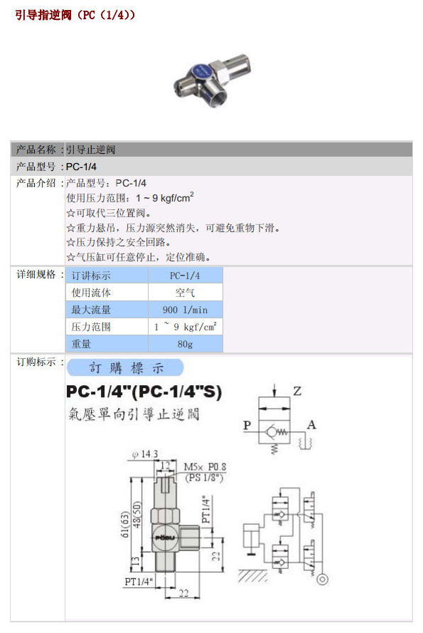 PC-1/4",PC-1/4"S,POSU引導(dǎo)止逆閥