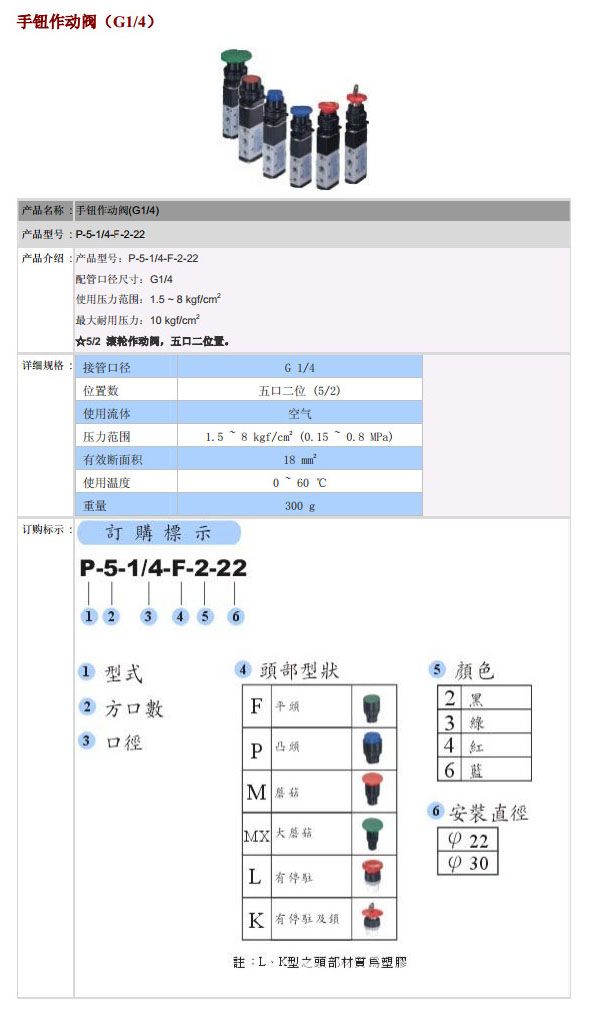 P-5-1/4-F-2-22,POSU手鈕作動閥