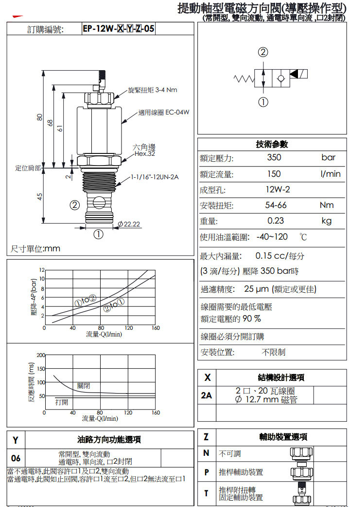 EP-12W-2A-06-N-05,EP-12W-2A-06-P-05,EP-12W-2A-06-T-05,winner提動(dòng)軸型電磁方向閥