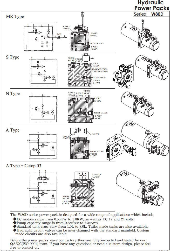 W80A,W80AB,W80BT,W80D,winner油壓動(dòng)力單元