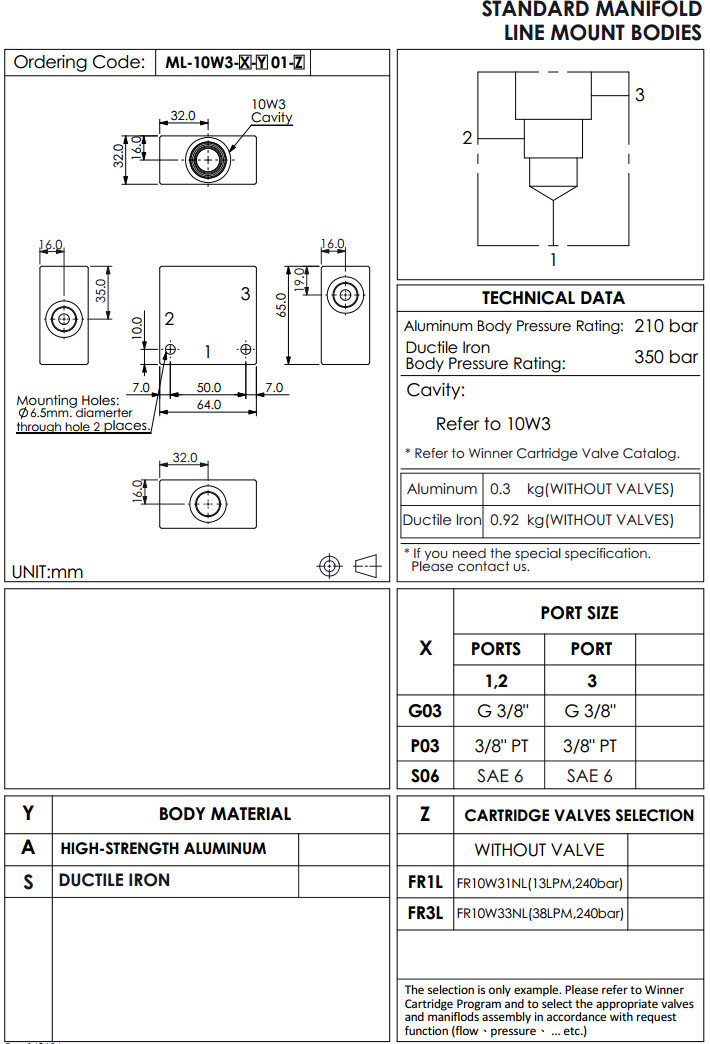 ML-10W3-G03-A01-FR1L,ML-10W3-P03-A01-FR1L,ML-10W3-S06-A01-FR1L,winner標準配管式油路板 |
