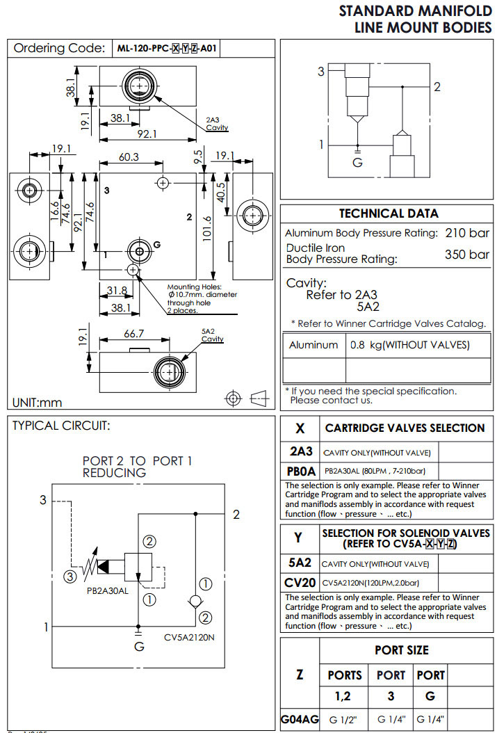 ML-120-PPC-2A3-5A2-G04AG-A01,ML-120-PPC-PB0A-5A2-G04AG-A01,winner標準配管式油路板 |