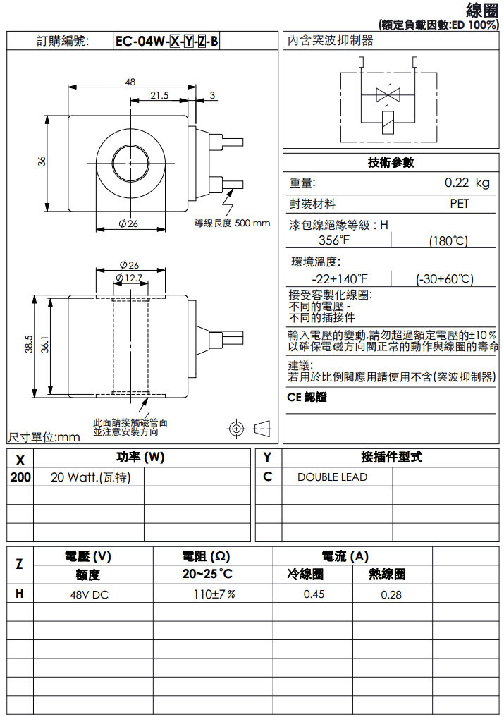EC-04W-200-C-H-B,winner線圈