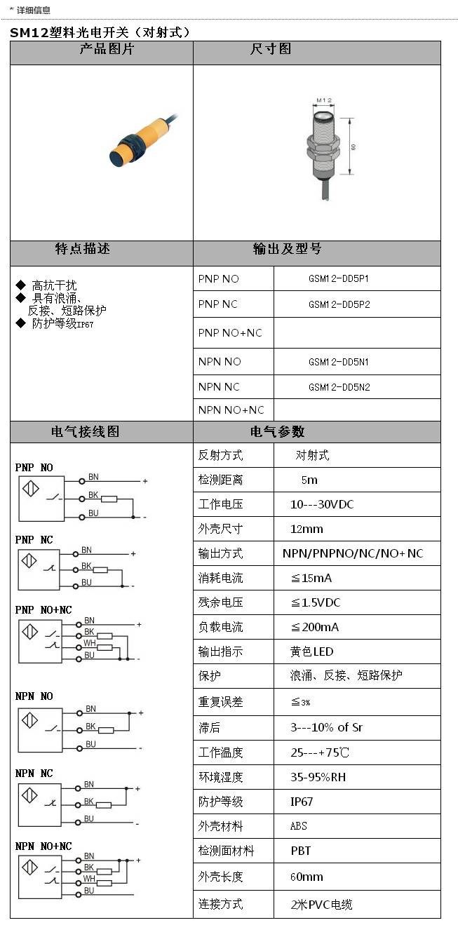 GSM12-DD5P1,GSM12-DD5P2,GSM12-DD5N1,GSM12-DD5N2,SM12光電(對(duì)射)