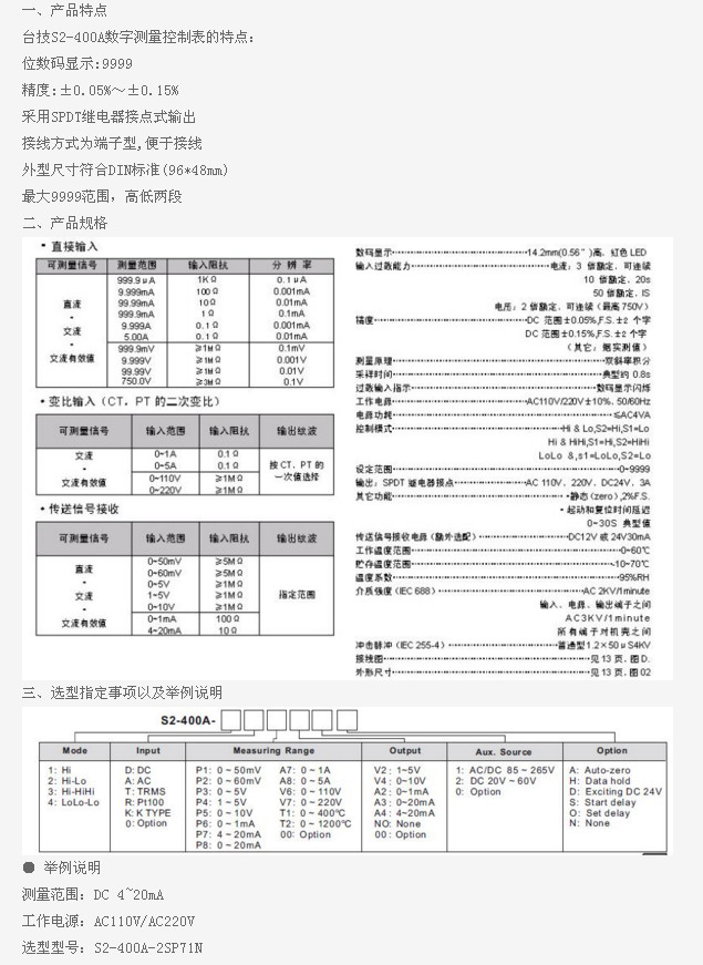 S2-400A-1,S2-400A-2,S2-400A-3,S2-400A-4,S2-400A-2SP71N,S2-400A,數(shù)字測量控制表