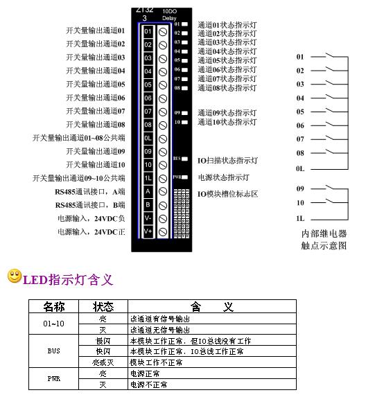 ZT323是10通道開關(guān)量輸出模塊,內(nèi)部采用繼電器輸出,觸點容量為220VAC0.5A。ZT323和CPU模塊一起拼裝使用時, CPU模塊CPU314-2C會在寄存器區(qū)為其分配12個映射寄存器。詳見《寄存器分配規(guī)則》。