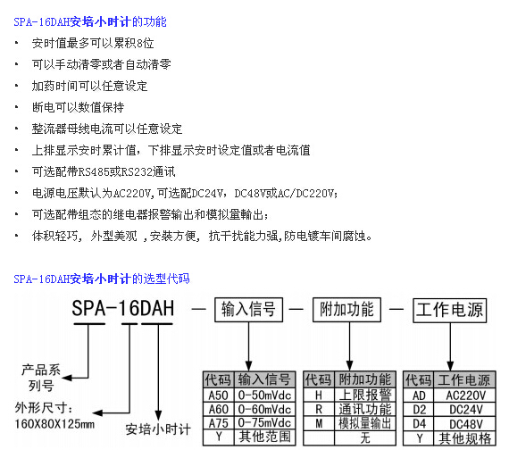SPA-16DAH-A50,SPA-16DAH-A60,SPA-16DAH-A75,SPA-16DAH-Y,安培小時計