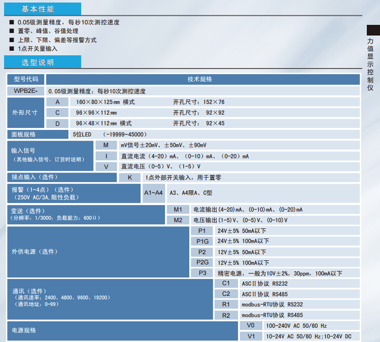 WPB2E-A,WPB2E-C,WPB2E-D,WPB2E力值顯示控制儀