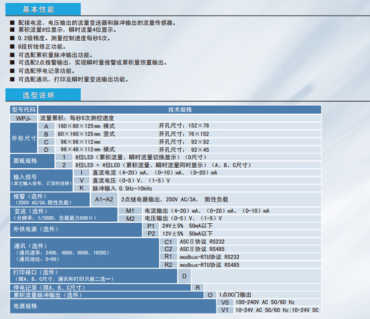 WPJ-A,WPJ-B,WPJ-C,WPJ-D,WPJ流量積算儀