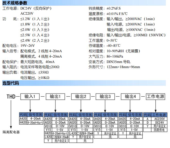 TH系列隔離配電器支持底座插撥裝卸方便、二線制和四線制已經做成通用型,撥碼設計。