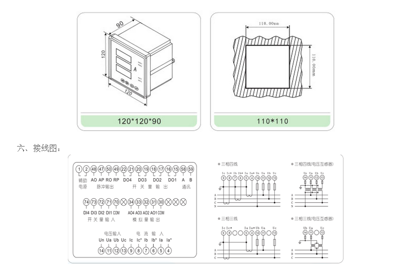 MT-B140S系列三相智能電測表是一種可設(shè)置CT和PT變比,具有模擬量變送輸出、繼電器輸出等功能,配備RS485通訊接口的智能系列儀表。可用于測量三相回路中的電流參數(shù)值。該系列產(chǎn)品以安裝簡便,操作簡潔、準(zhǔn)確度高特點(diǎn),主要替代了目前用于400V低壓柜中的指針式儀表、電量變送器等測量、顯示、變送裝置。