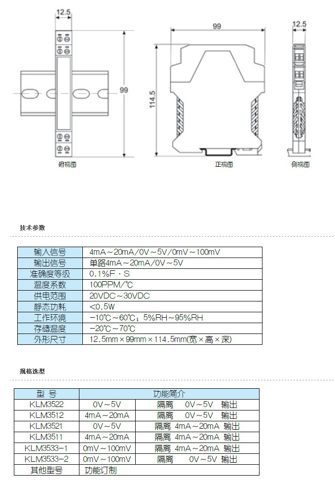KLM3522,KLM3512,KLM3521,KLM3511,KLM3533-1,KLM3533-2,KLM35,隔離模塊