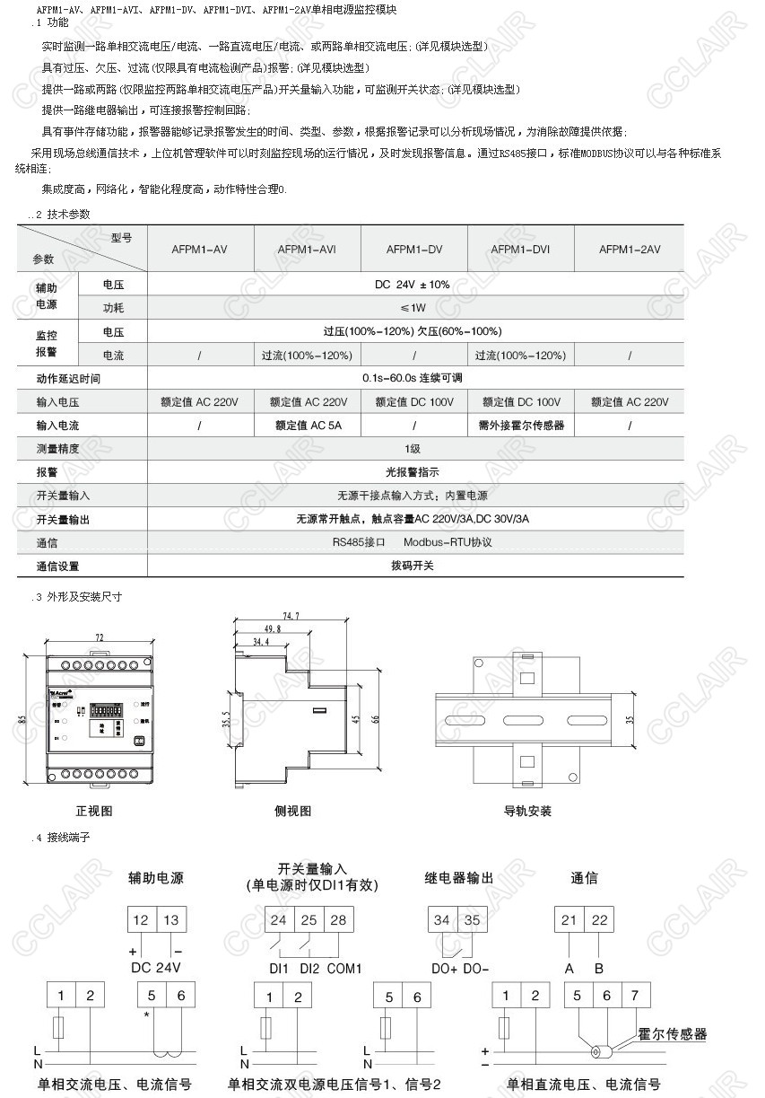 AFPM1-AV,AFPM1-AVI,AFPM1-DV,AFPM1-DVI,AFPM1-2AV,單相電源監(jiān)控模塊