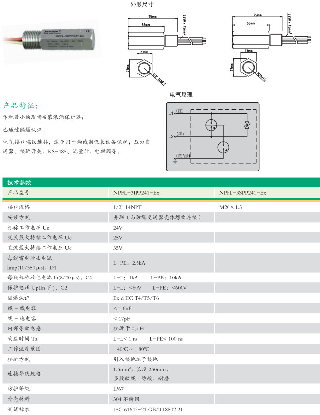 NPFL-3SPP241-Ex,NPFL-3IPP241-Ex,現(xiàn)場(chǎng)安裝型浪涌保護(hù)器(串聯(lián))
